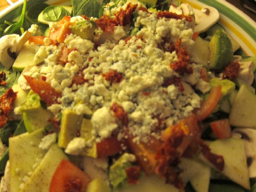 More on our salad tour. I love a sweet element in a savory salad, it is that little note of surprise when you least expect it, add in creamy avocado, earthy mushrooms and one perfect ripe tomato, and a few shopped sundried tomatoes (Gary’s favorite) and you are sure to have a winner.