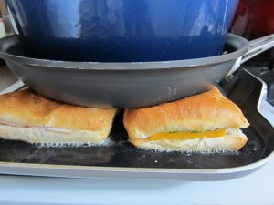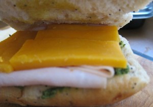 The beauty of a sandwich is that you can mix and match pretty much any combination of flavors together between two slices of bread and have a taste treat…especially when that combo includes fresh mozzarella cheese, heirloom tomatoes and fresh basil, or smoked turkey, extra sharp cheddar and homemade pesto grilled until the cheese is super gooey. Here are two we made last week.
