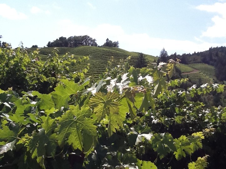 Hidden Ridge lies between Mount Hood and Diamond Mountain in the Mayacamas Mountain range near Pride Mountain Winery and Paloma Vineyards. Elevations range from 900’ – 1700’ with the 55 acre vineyard laying at 45 to 55 degree slopes. In the early 1990’s Oklahoma natives Casidy Ward and her hubby Lynn Hofacket purchased the 160 acre property, which at the time was better suited for cattle than grapes, beginning the 6 year process of clearing 55 acres of land in 1995 to build their winery. Focusing solely on 4 clones of Cabernet Sauvignon Hidden Ridge released their first wines with the 2003 vintage and have received acclaim ever since. I had a chance to visit this vineyard and get to know Casidy and Lynn a bit last year. Seeing the site it is amazing that someone thought you could make a vineyard work here. The land is crazy steep, requiring a serious four wheel drive or a helicopter to get to (we opted for the 4 wheel drive), and even the smallest slope feels like a work out when climbing. But, it is also beautiful and ideal or producing interesting, layered and powerful high quality Cabernet Sauvignon.