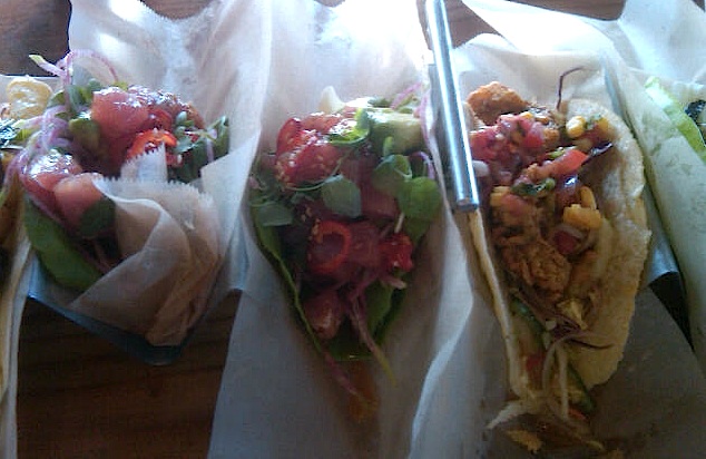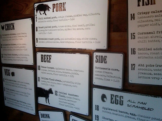We went the other night with the same group before a 100 degree Ranger game and found it tough to leave. All fresh ingredients, made to order (tortillas are hand pressed to each order), for a great price. The menu is smart, with easy to grasp combos, that are still interesting and very flavorful. Nothing is processed, so even a crispy fried oyster taco in a corn tortilla with a fennel, Napa cabbage and radish salad and smoked chili butter was light and packed with flavor. Gary often comments that anything would be better with chorizo on it, so imagine his delight with the chorizo, egg and pepper-jack taco with serrano-ranchero salsa and refried beans. My favorite, a raw Ahi poke in a lettuce wrap with avocado, watermelon radish and a ginger-soy vinaigrette. There isn’t a taco on the menu priced over $4.50, and most drinks are $5 or less.