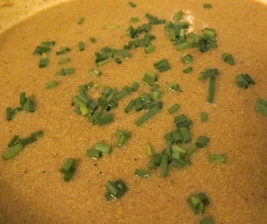 We were watching an episode of Iron Chef the other night, as we often do, and Chef Bobby Flay made a sauce for one of his dishes combining roasted corn with coconut. Inspired I took this idea and created a sweet and spicy soup made with fresh roasted corn poblano and jalapeno peppers and coconut milk. As we were working through the process we almost didn’t add the coconut milk, but a little side taste test adding a bit of coconut milk to a cup of the finished soup….wow!!! The flavor just popped, mellowing some of the pepper’s heat and giving it an undertone of Thai inspired sweet spiciness. Puree the soup until very smooth, but reserve some of the whole corn kernels for garnish with chopped cilantro. Serve with crusty bread for dipping.