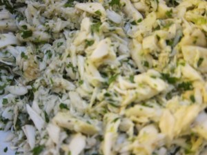 When the soup has simmered use an immersion or regular blender and blend the soup until very smooth. Return the soup to a simmer and whisk in the coconut milk and fresh herbs. Keep the soup on simmer until ready to serve. Adjust any final seasoning and ladle the soup into a wide soup bowl, large enough the crab won’t sink to the bottom. Remove the crab from the fridge and add a generous scoop to the center of each bowl. Garnish the edge of the soup with a bit of the oil and serve.