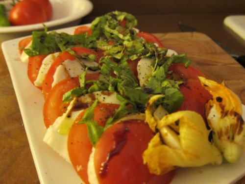 We picked our first few peppers the other day, which we added to a fresh herb salad filled with lots of basil, mint, thyme, chives and baby lettuce, along with our first few zucchini flowers, which we stuffed with mozzarella and served with a drizzle of balsamic beside a Caprese salad. And, happily dozens of grape tomatoes are starting to turn from green to red meaning we’ll be making tomato fritters like the incredible ones I had in Santorini soon.