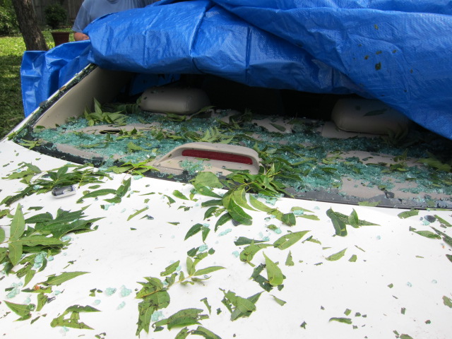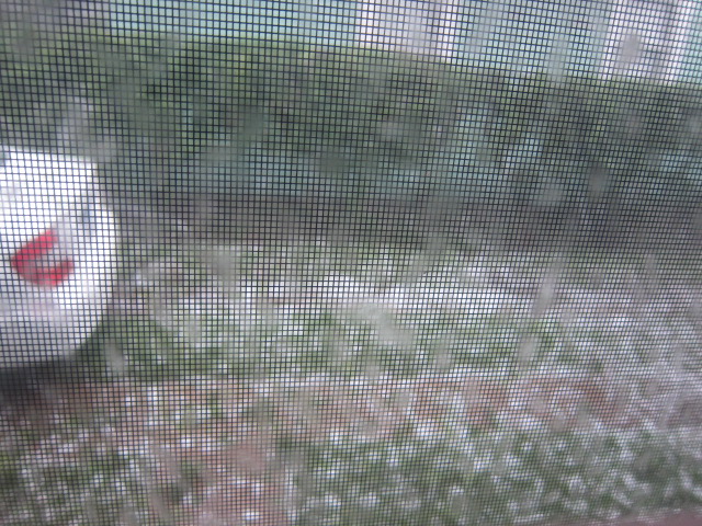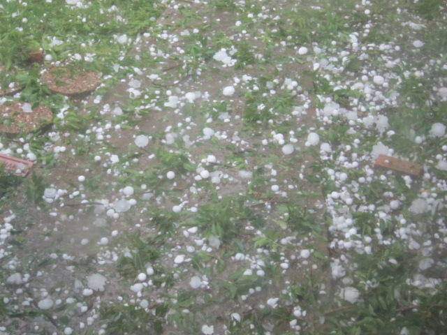 Last night around 6:45, as we were toasting with a glass of bubbly and opening birthday prizes that all came to an end as baseball size hail rained down from the sky reigning terror on the house, the car and the garden for 20-30 minutes straight. Simply crazy and quite amazing….
