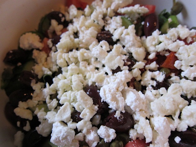 6 oz Greek feta (I found one from Mykonos that was awesome.  Just find a good, creamy one), crumbled