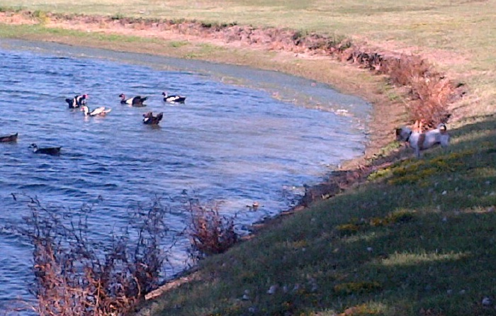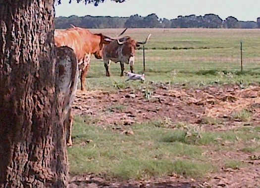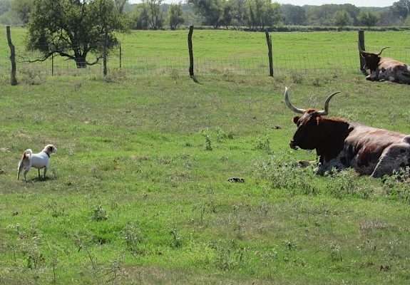 After settling in we explore the grounds a little bit, giving Yoda a chance to spread his legs a bit and get a lay of the land. This is when the inner country dog took over the sleek city dog, as Yoda leaped into the pond chasing scattering geese, paddling after them with gusto. Then he turned his attention to the longhorns…within 10 seconds our little 15 pound pup was herding 500 pound longhorns, barking up a storm, staring them down, pushing them this way and that….with us screaming in the back ground to get him out of there, unfortunately to no avail. It was by far the scariest, and the funniest thing I have ever seen. At any minute he could have been kicked or gored, but he was also telling those steer who was boss…and it seemed to be a little 15 pound Jack Shit (Jack Russell/Shih Tzu that is).