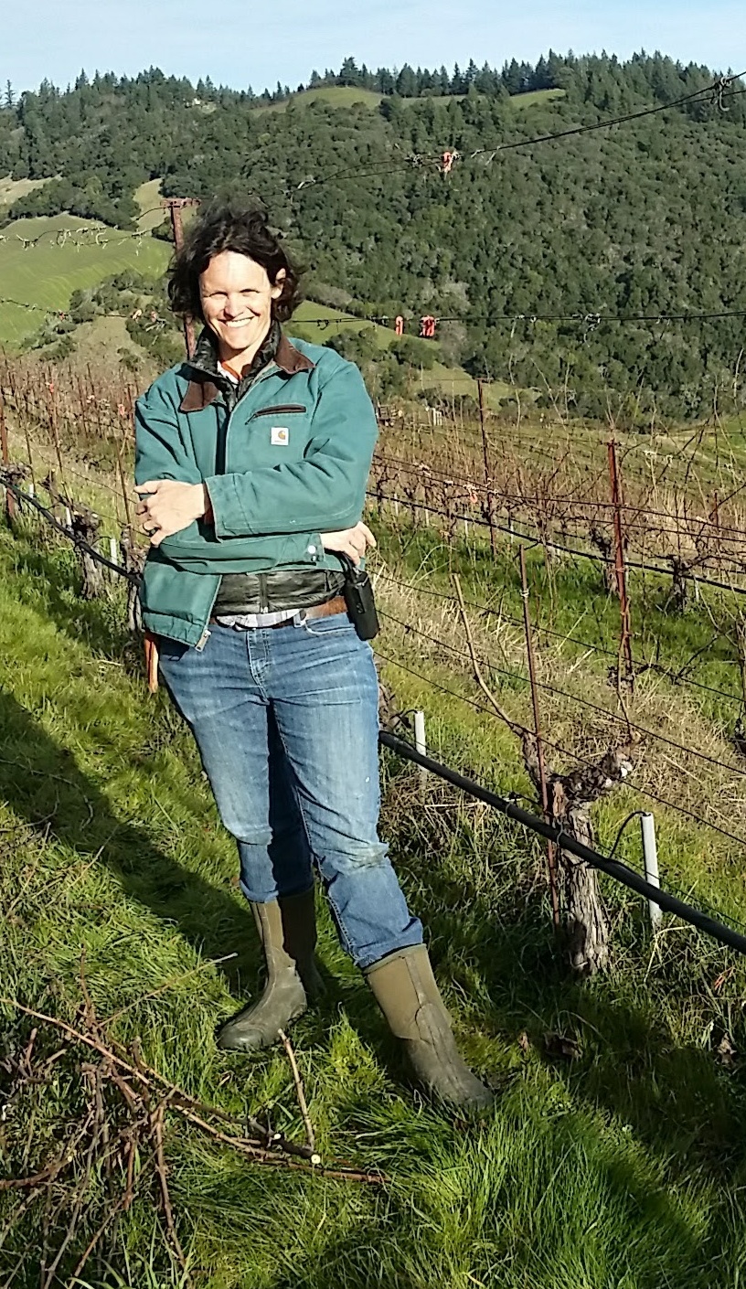 Ashley Anderson-Bennett is Associate Vineyard Manager for Cain Vineyards and Winery, set high atop Spring Mountain in Napa Valley. Originally from Michigan and went to school in New York. She arrived in California without ever working in a vineyard but knew her path was destined to work with either animals or plants. She opted for the later, joining Cain in 1999. Originally a sheep ranch that was developed into a vineyard in 1980.