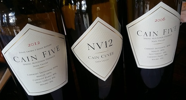 The Cain Vineyard is considered one of the finest properties in Napa, varying in elevation from 1,400 to 2,100 feet along the crest of the Mayacamas Range overlooking Napa Valley and Saint Helena, from the most south-western corner of the Spring Mountain District. The first grapes to ripen are usually east-facing Merlot, and the last picked are often some northwest-facing Cabernet Franc.