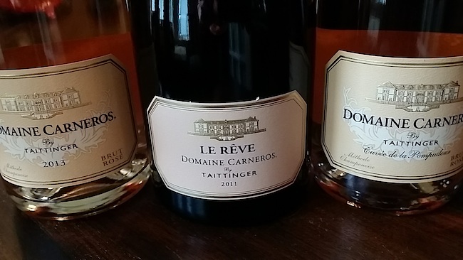 Two of her Brut Rose wines, Cuvee de la Pompadour, named for French King Loius XV’s paramour, Madame de la Pompadour with lively berry, peach and honeysuckle. ($37) and Le Reve (the dream) Rose 2011, very special, very small production from select vineyards on the estate blending almost 50/50 Pinot Noir and Chardonnay ($130) with tangerine, melon, wild rose and brioche notes.