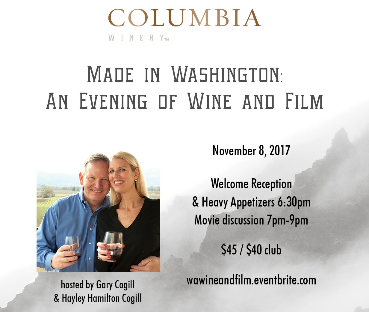 We then head to the Northwest to Woodinville, WA, just outside of Seattle to partner with Columbia Winery on November 8 for an evening celebrating the best films made in Washington, paired with outstanding wines from the Columbia Winery portfolio, including their Red Mountain Cabernet Sauvignon and stunning Horse Heaven Hills Caberent Franc. Tickets are available here.