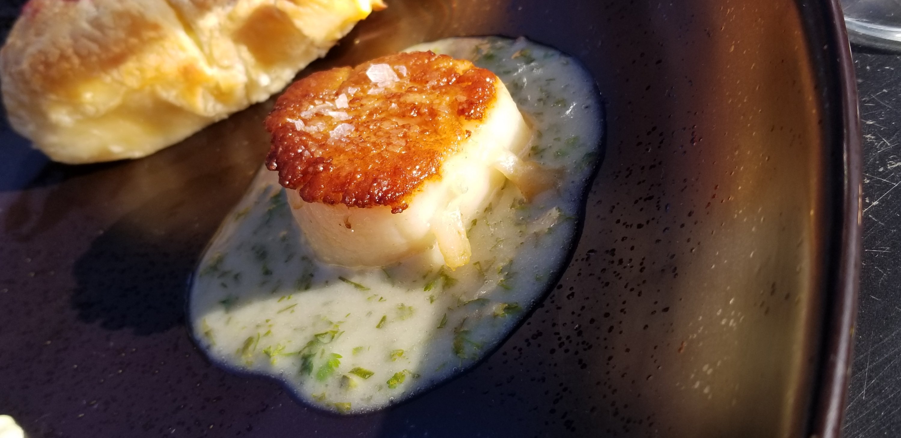 Perfect Albarino pairing, seared scallops with an herb filled burre blanc