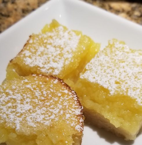 Gary loves lemon bars. Really, he loves any type of fruity dessert, but lemon bars in particular. Our dear former Dallas neighbor, Linda, used to make her version, surprising Gary every now and then with a tray of these sweet, tangy, sticky treats. Those were good days.