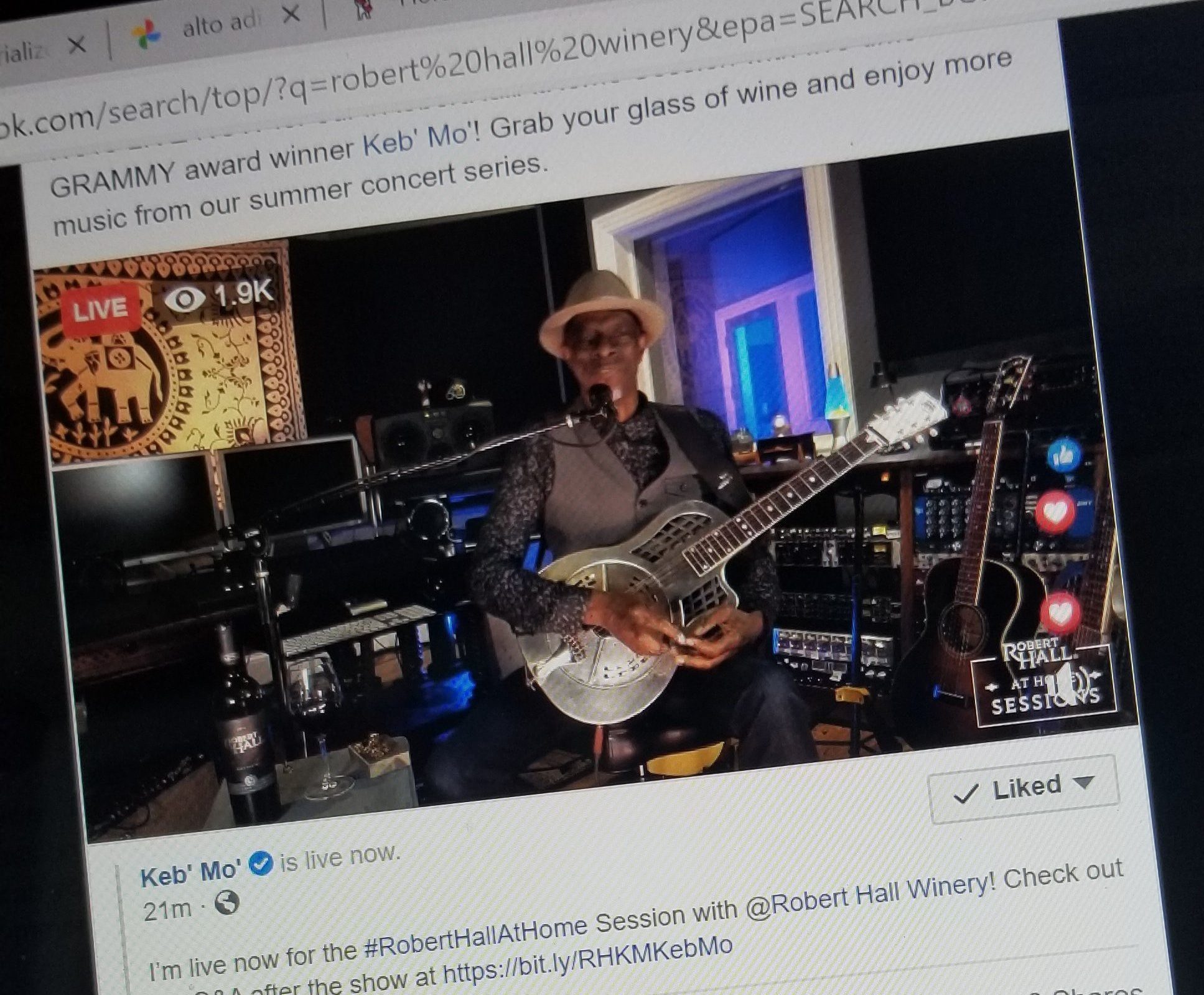 Gary and I recently attended Robert Hall Winery’s Facebook live show featuring Keb’ Mo’ while enjoying a bottle of Robert Hall Chardonnay. Keb’ Mo’ is one of G’s favorites, a constant on his playlist, especially while working in the gallery. Listening to his smooth tone while enjoying the refreshing, sleek wine, was the perfect afternoon pairing. Let’s face it, during these long days of COVID quarantine, we all need a little pick me up.