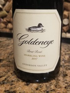 From Anderson Valley, Goldeneye Brut Rose ($65) showcases the complexity, and elegance, of Pinot Noir and Chardonnay from the rugged, rustic, untamed region of Northern California. Creamy and toasty on the open, with freshly baked bread and marzipan melding with mandarin, verbena, honeysuckle, and ripe melon with just the right note of spice on the finish to keep you going back for more.