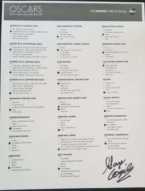 Gary’s Oscar ballot is below. Good luck with your predictions, and cheers to all the nominees!