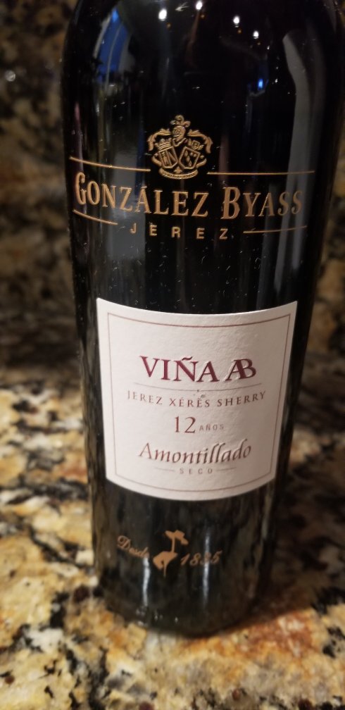 Gonzalez Byass Vina AB 12-year is an Amontillado Sherry crafted from Palomino grapes which age under the Flor for four years, followed by 8 years of aging in barrel in the Vina AB solera. The combination of techniques creates multitudes of layers in the savory, dry sherry with yeasty, toasted biscuit, and roasted almond aromas that meld with spicy, oaky, dried fruit flavors from the barrel aging. As the aging is more extensive than the Tio Pepe, it is more expressive and rich, with a well-rounded palate. Though I love a well-made Fino, like Tio Pepe, quality Amontillado is always a welcome addition to my table with aged cheese and roasted game or poultry dishes.